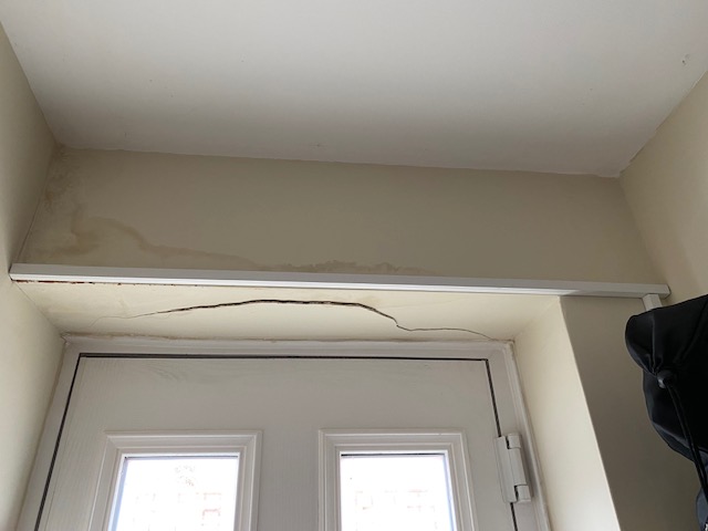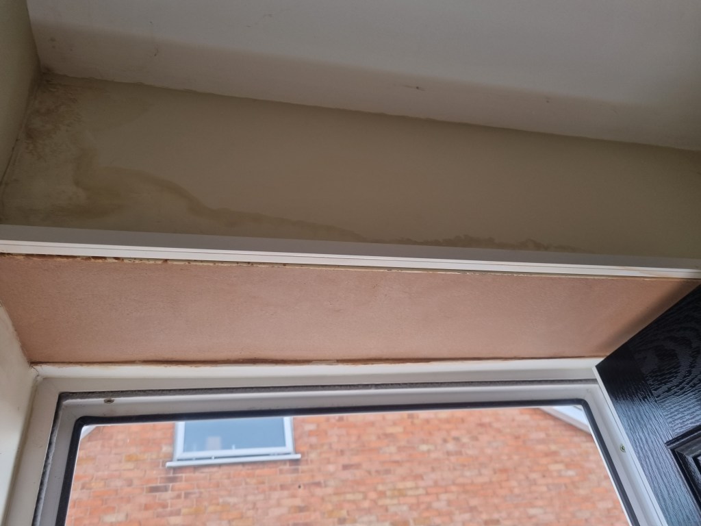 Last week I helped a lady with some small plastering needs. She has a side entrance which is directly under her bathroom and at some point there was a leak and the water cracked the plaster in the doorway below.