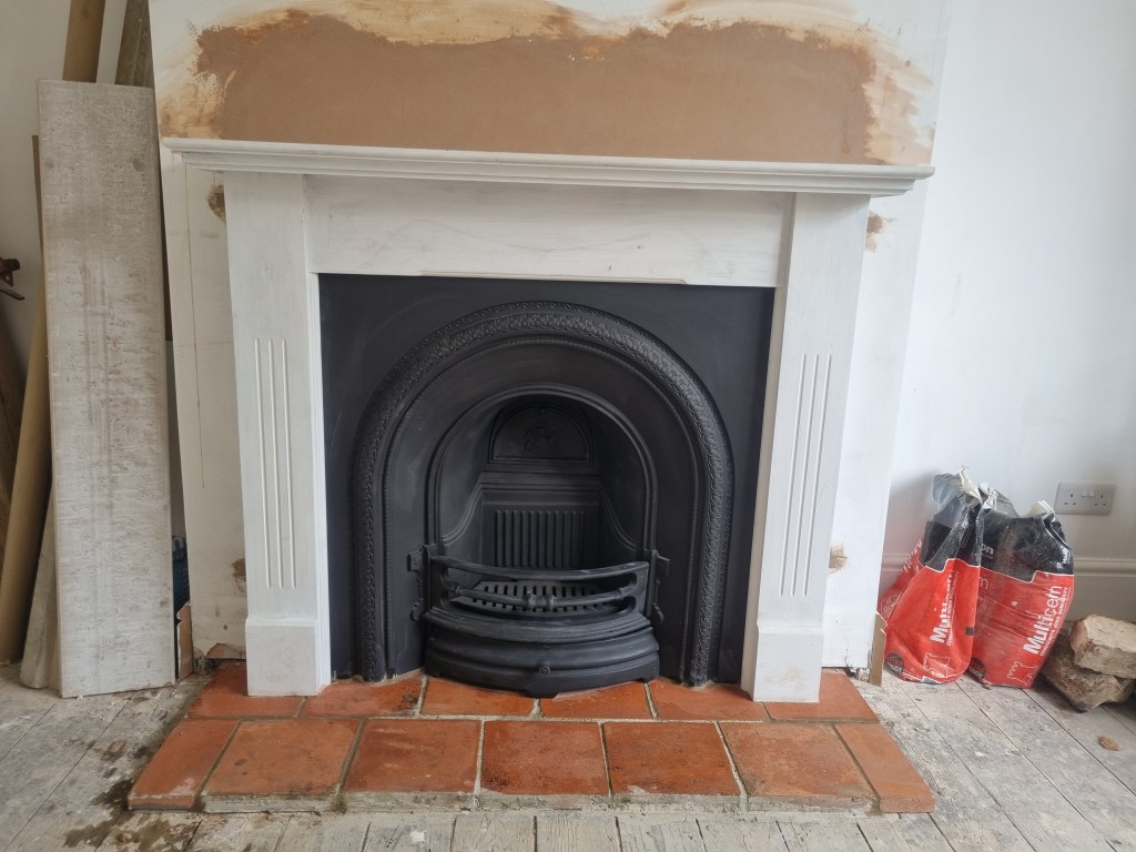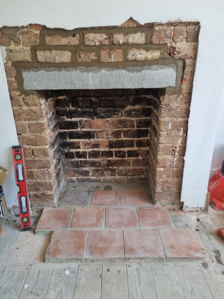 This job was a bit of an odd one as we installed the concrete lintel, cast iron fireplace and the wooden surround as my full time work, but the customer asked if I can help with the extension of the tiled hearth on the side.