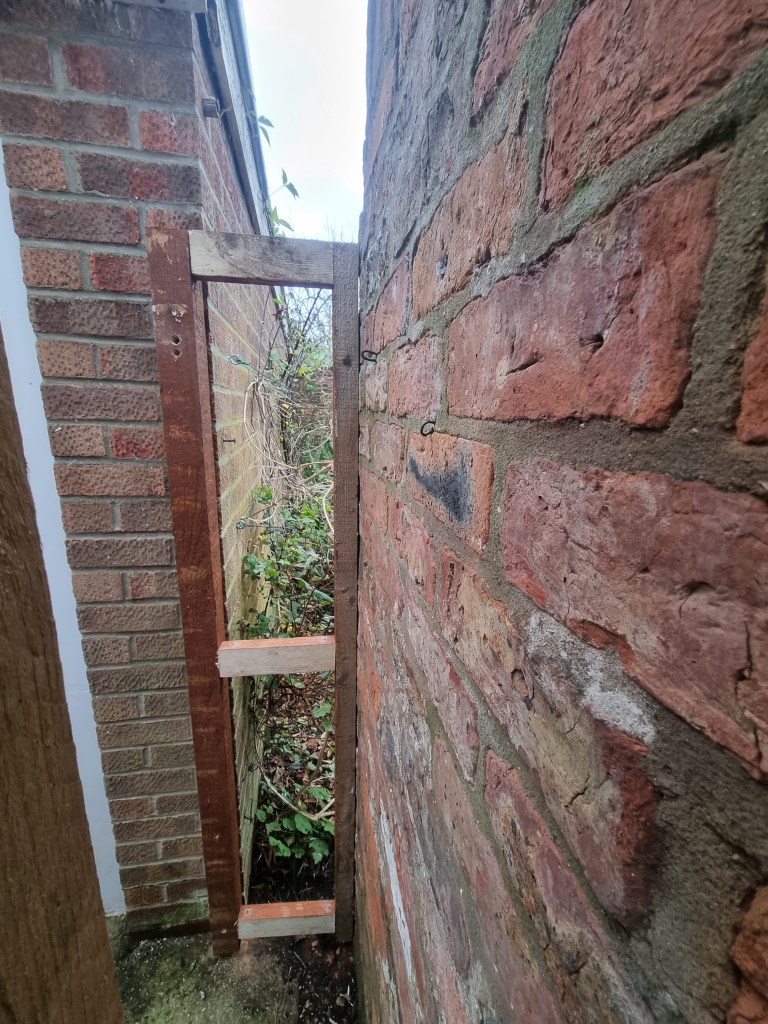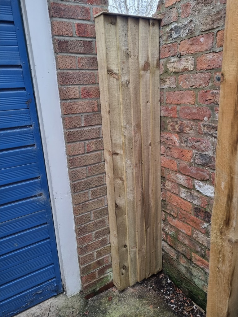 When the customer bought their house, there was this small bit of fencing between their garage and the next door house. But this fence was in a real poor condition. At some point they tried to patch it up by screwing plyboard over it, but even that was rotting away.