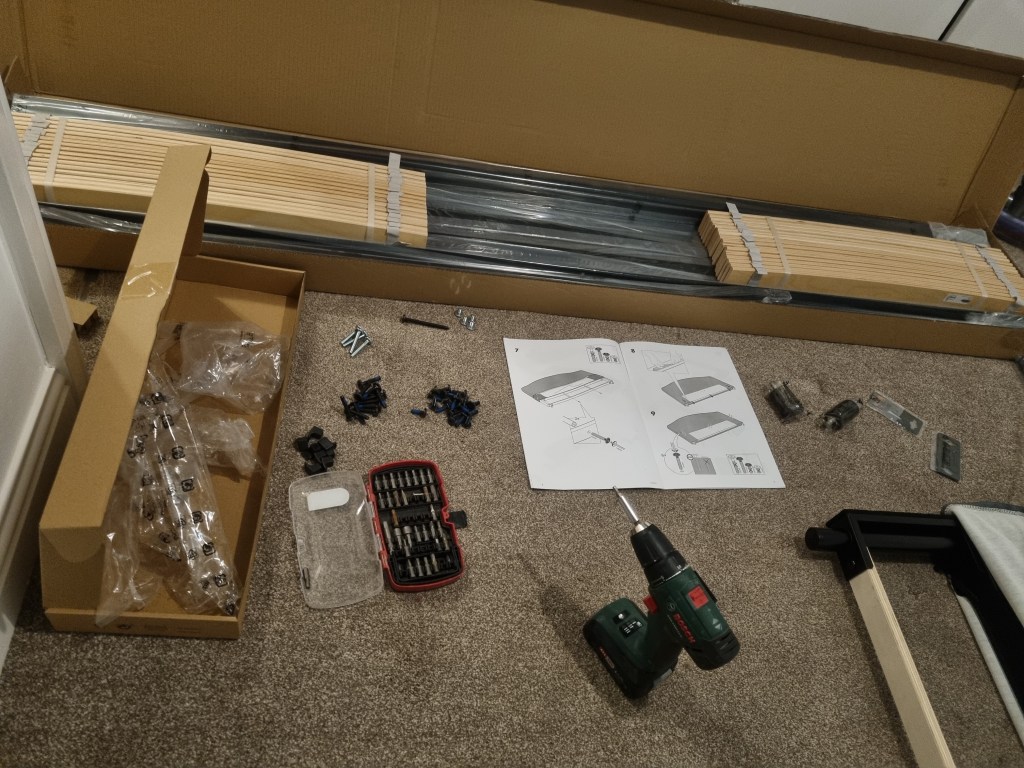 This time I had to assemble an IKEA double bed for a customer’s child as the previous one wasn’t big enough already. There was a lot of measuring prior to buying the bed as the room is not the largest and the bed turned out to be quite a snug fit. I started with headboard and carried on the bed frame and the footboard.