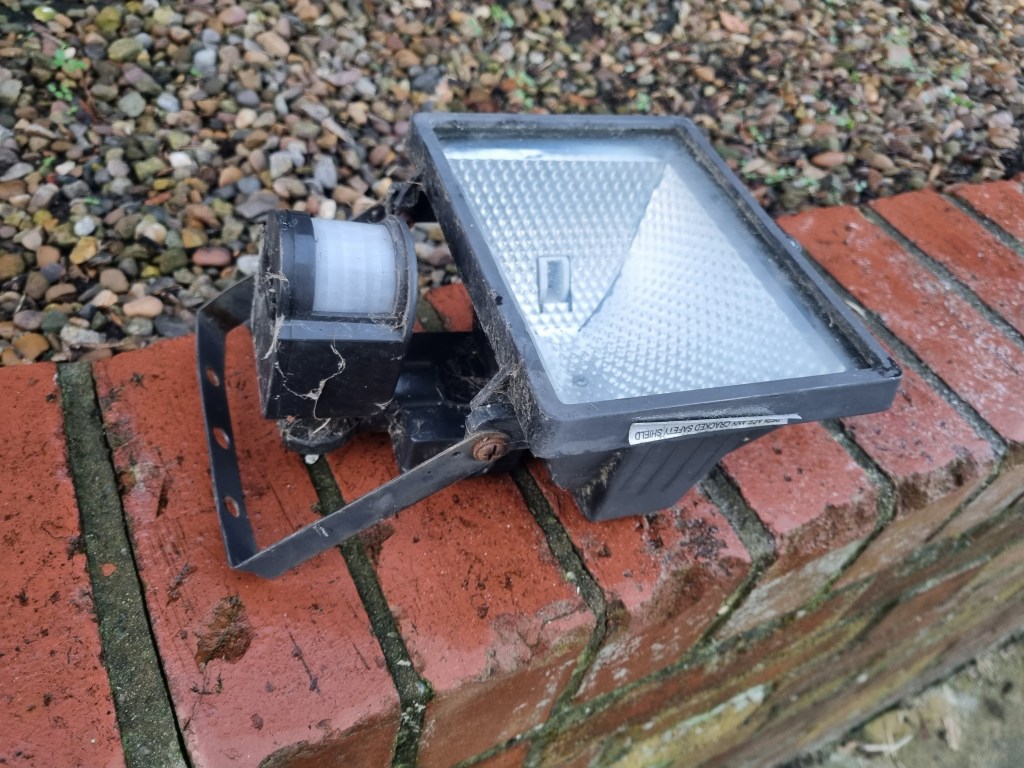 At home we had an old motion sensor floodlight above the shed door, which was a great help any time I had to get some of my tools out very early in the morning or very late in the evening. But as it was an old halogen unit, it was expected that sooner or later that halogen bulb will go out. And I hate changing halogen bulbs in flood lights or work lights because I always end up using at least two sometimes three lightbulbs to replace one, as I always touch it accidentally. And once you touched it, it will blow again either straight away or within minutes.