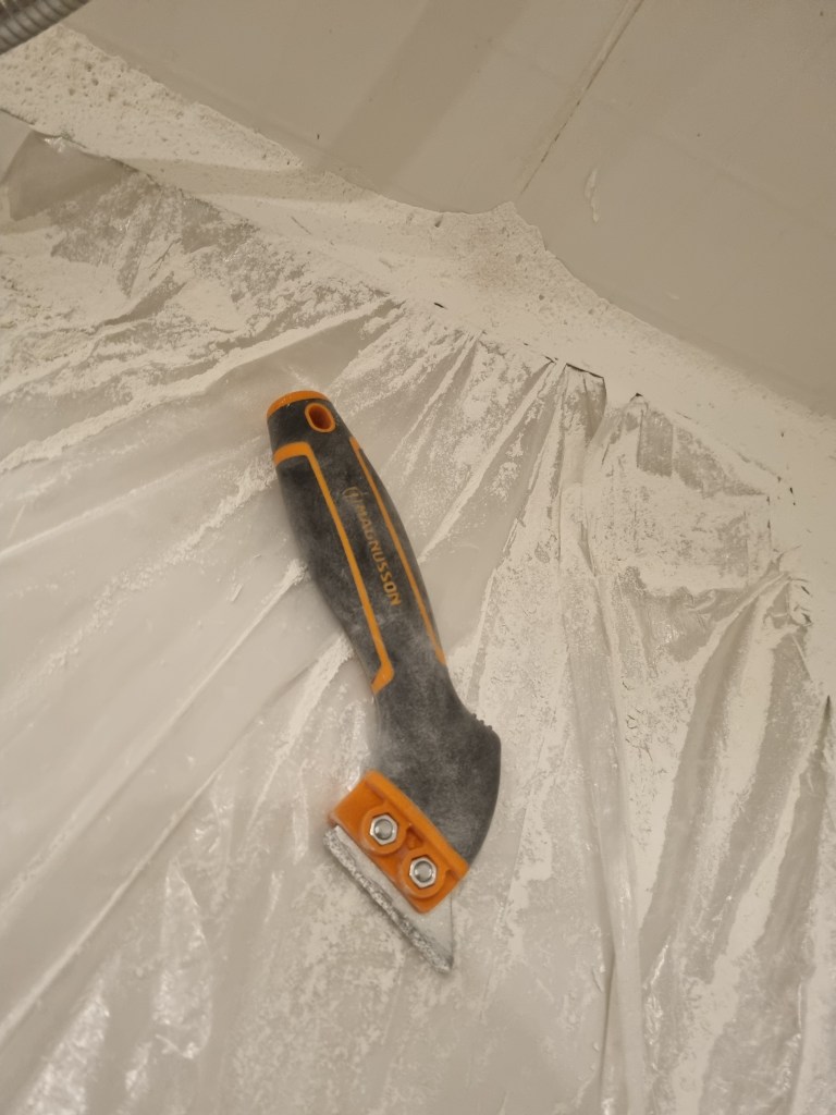 I mainly used two tools for the removal of the old grout. One was a Bosch Professional multitool with the proper grout removing blade. It works well around delicate areas, but makes lots of noise and dust so full PPE is required. The other is a £4 hand grout rake. I bought two of it just in case it goes blunt but even after two bathrooms it didn’t show any signs of wear. The only downside of it that after using this rake for about an hour your arms will fall off. It’s safe to say it is very hard work.