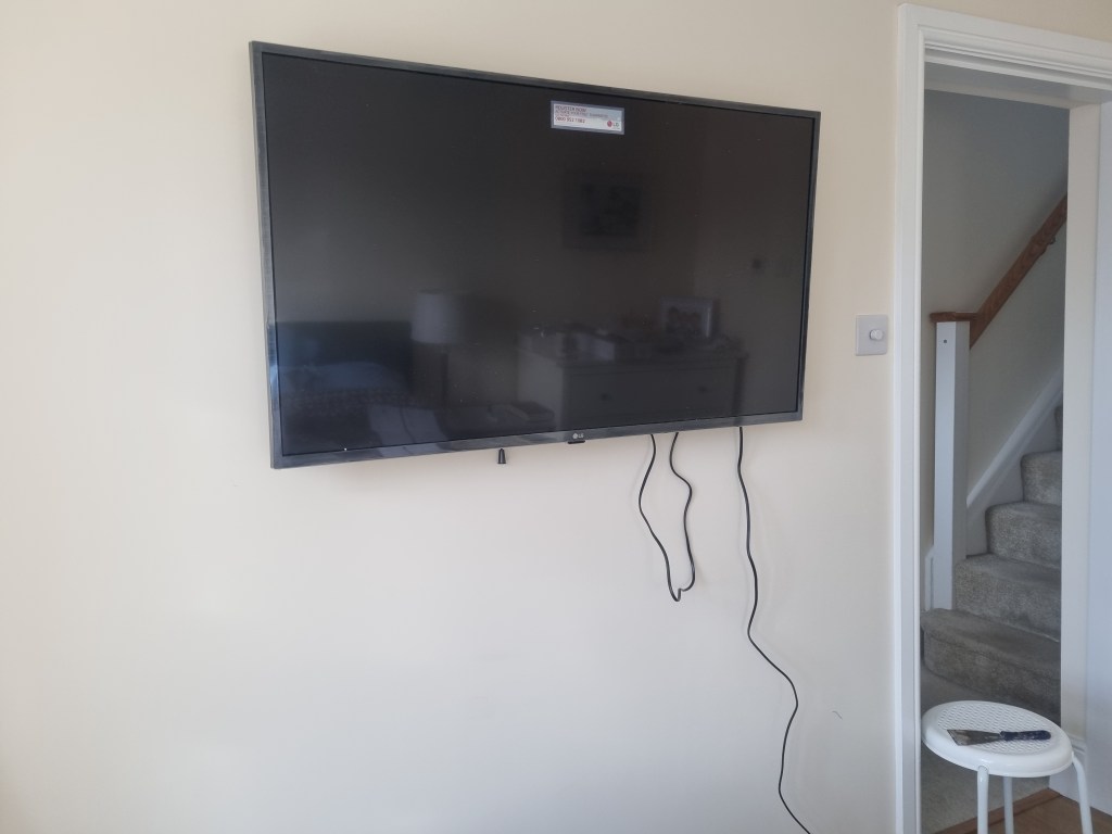 This was a quick job I’ve done for an elderly couple. They turned their garage into a bedroom and needed a new TV bracket on the wall. They had the TV and the bracket ready and I was in and out within an hour. Bit of measuring, marking and drilling, and the bracket was on the wall. I bit of extra work to hide all the hanging cables and I was on the way. Obviously I didn’t make a photo of the finished job so this time you only get some work in progress pictures. Soz.