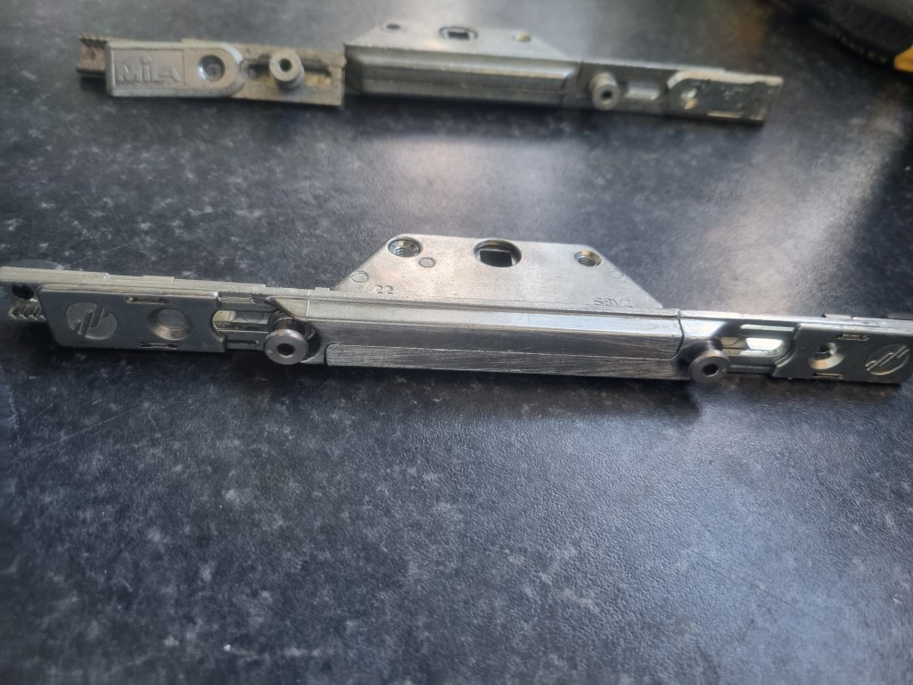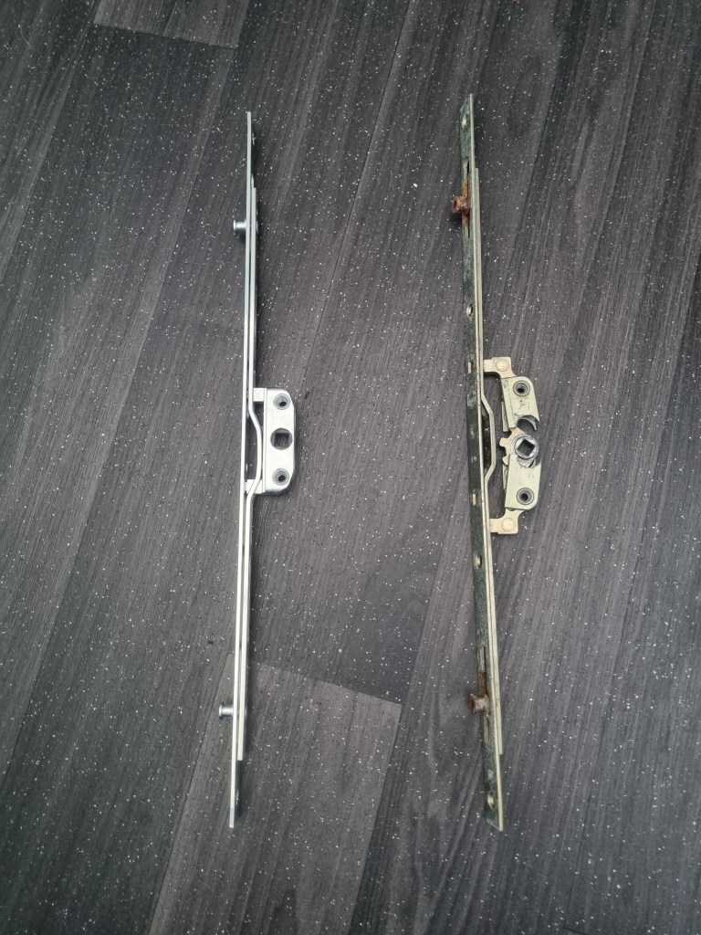 The mechanism was super stiff and once the window was open I saw it straight away that the locking shootbolt is broken. That’s why the bottom part stuck in closed position and the handle didn’t do a thing. So, now I had two broken pieces of UPVC locks. The next thing was that I made 2 hour roundtrip to Leeds and back to a specialist shop, where they changed my broken pieces to exactly matching new ones. I chose this specialist shop because these parts had to be perfectly matched. If they are different here and there a couple of millimetres, the locking mechanism won’t work. So I got my parts and I was ready for the assembly.
