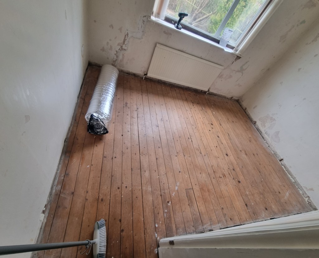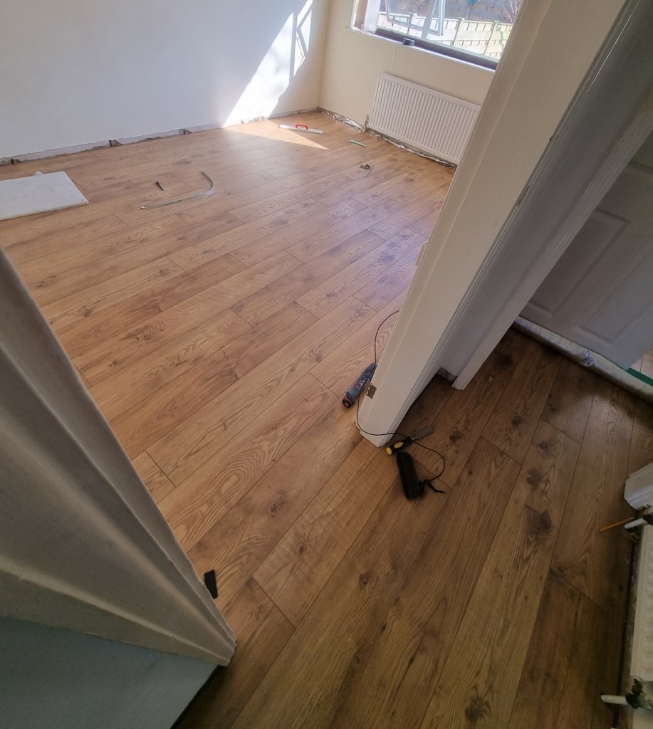 Once I was past the corridor the job was quite quick. I find it a lot easier to cover large areas rather than just small corners and narrow spaces. So by the end of the second day I finished laying all the flooring and the rooms were ready for the skirting board and to re-hang the doors.