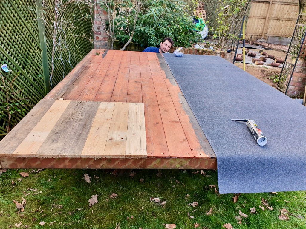 After this I could focus on the roof. I stripped off all the old felt/plastic sheets and I could have a proper look on the water damage. One corner of the roof was completely rotten away, so I had to replace some of the timber frame and some of the boards as well.