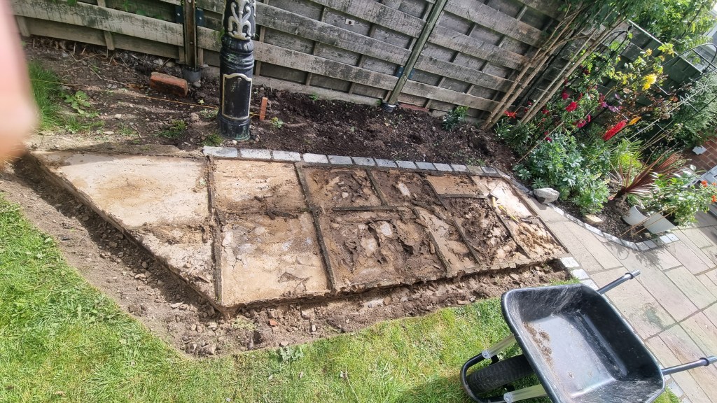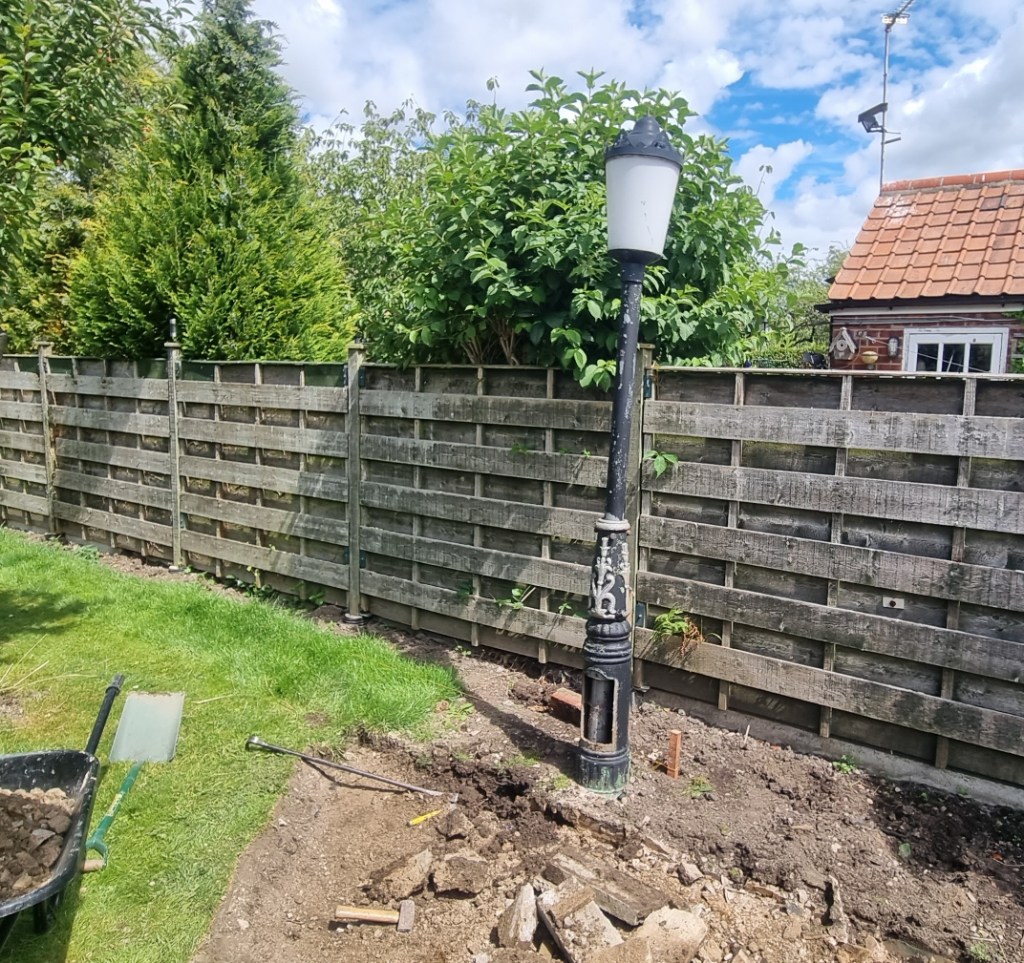 Before I could start on the building bit, I had a small lamp post to remove as well. At some point one of the previous owners thought it’s a good idea to have a cast iron lamp post in their garden. I really don’t think it was. It took me a while to break the concrete up bit eventually the lamp post was out as well.