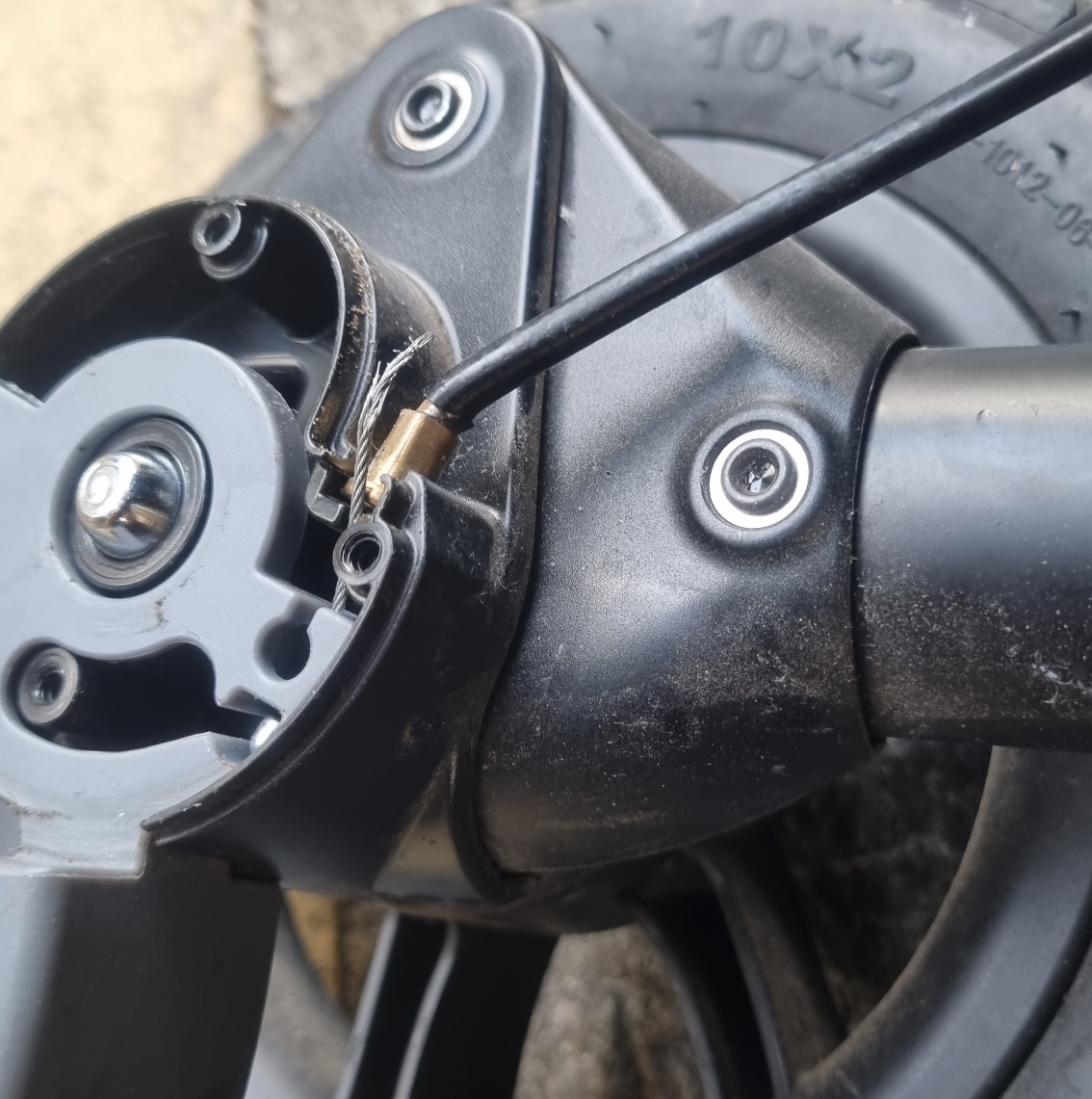 When I checked and measured the original cable, I figured that a pushbike gear shift cable has nearly the same size end, so in theory, that should fit snug into the brake fitting. The challenge was the other end of the cable. I had to cut the cable to size and then “make” a cable end the same size and shape.