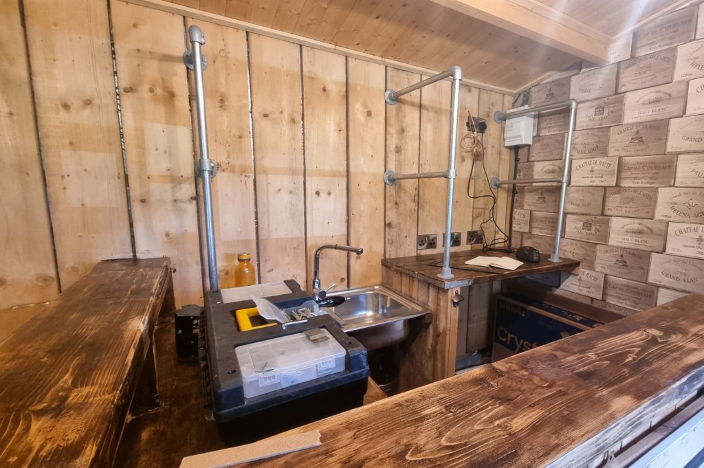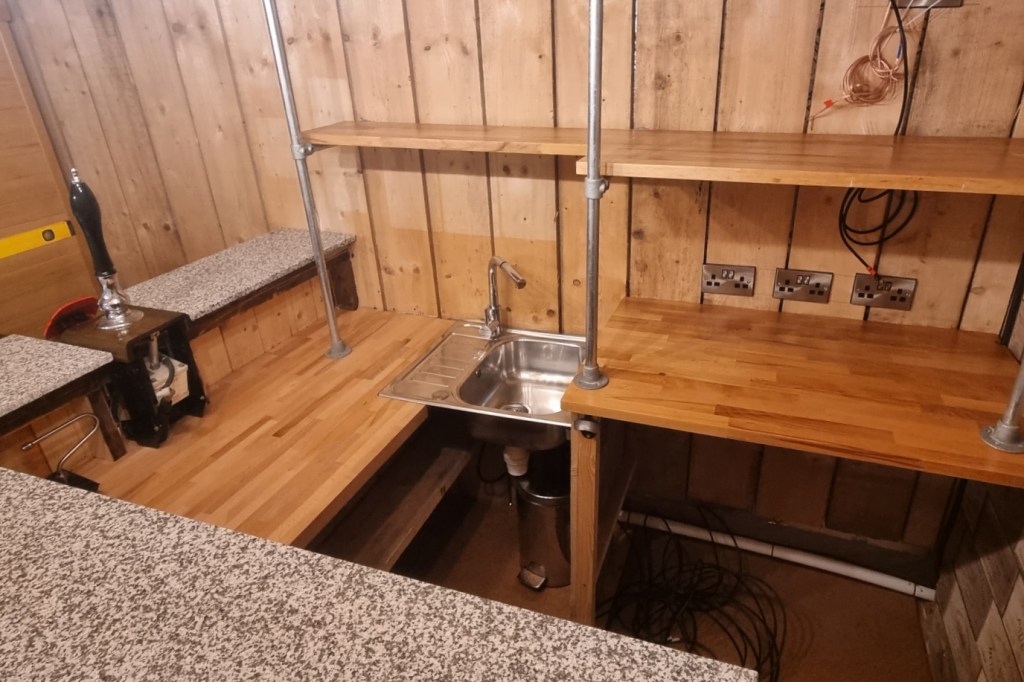 The last day I spent on finishing up the sink, building another layer of shelves below the worktop, fitting the beer pump on the bar counter and fitting skirting board all around the shed. This day I finished mid-afternoon and I could spend the rest of the afternoon packing and tidying up everything. There is still a bit of work left around the sink but we will pick that up a later time. The customer was really happy with the work and I was satisfied with the end result too.