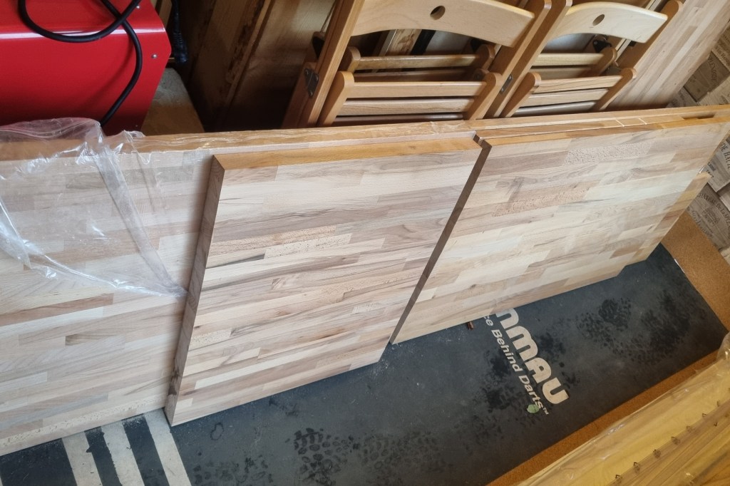 The first phase was the shelving and surfaces. All the shelves were sitting over those hipster steel pipework-like brackets. The owner wanted to keep the brackets as they looked nice but he couldn’t stand the look of the wonky and sticky scaffold boards. He also just recently finished updating his kitchen so he had a lot of offcut worktops from the new and the all of the old worktops as well. These were my materials to work with. Luckily both the old worktops and the new worktops were made from solid wood so they were quite similar in looks. The only challenge was that they were different thickness so I had to plan wisely to make sure there were no joints visible where you could spot this difference.