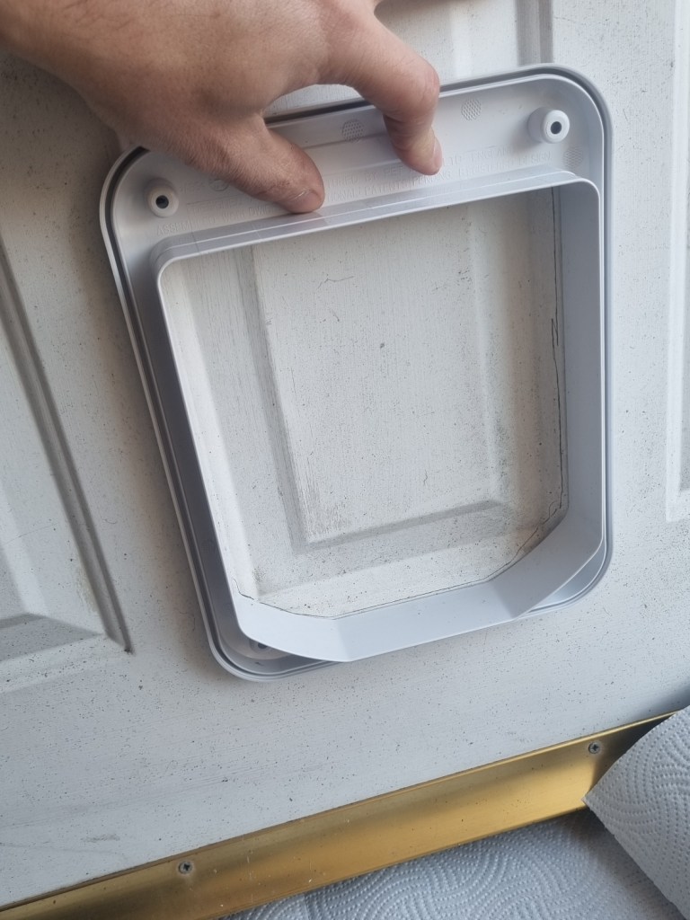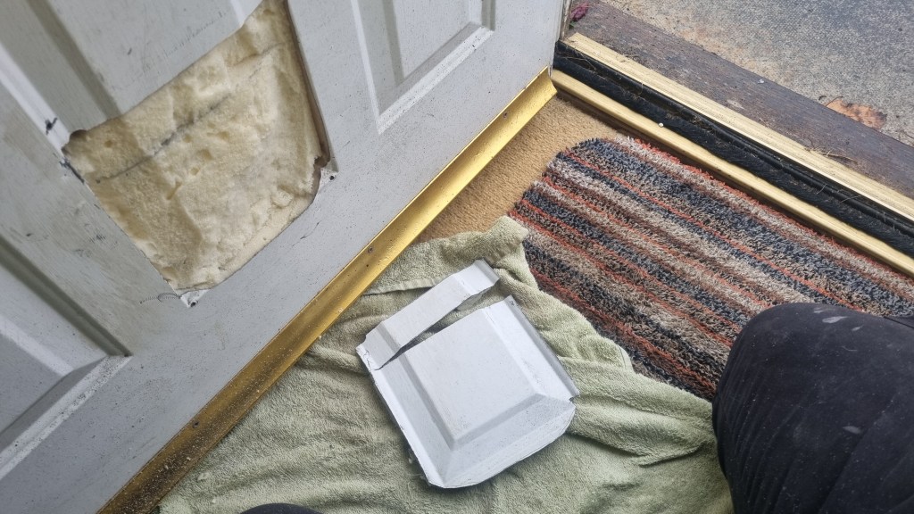A slightly miscalculated project on my behalf. A friend of mine asked if I could help with a catflap installation on his main door. Of course I said yes, I even told him, this will only take me about an hour. Rookie mistake.