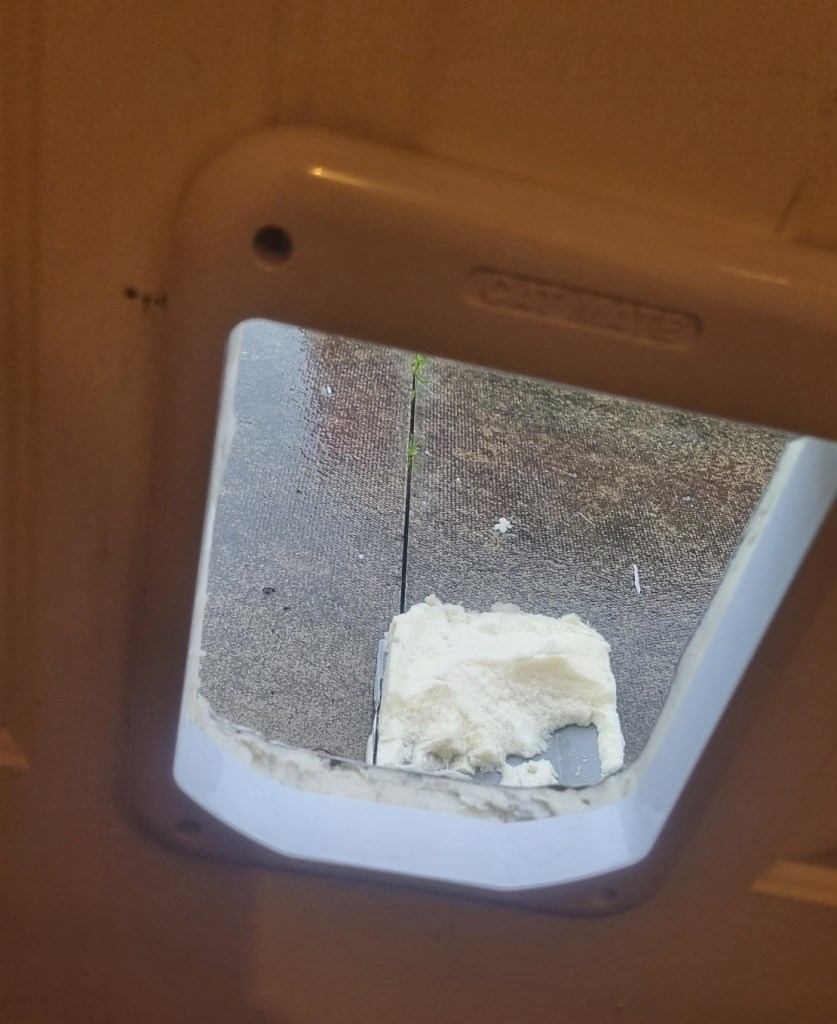 Once I was back, the work came together relatively fast. It’s quite amazing how fast you can work with the proper gear. I cut out the hole and fit the catflap in about 25 minutes. I even used a bit of silicone on the door where it stepped in, so it was all smooth and watertight. All in all, this wasn’t too bad of a project. But nobody expected a timber edged steel door. Even the owners – who had this place for a few years now – didn’t know it’s not a timber door. So it doesn’t matter how well you are planning, always expect the unexpected.